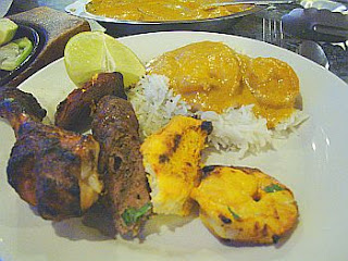 For my entree, I ordered the Tandoori Mixed Grill. The charcoal-grilled meats are delivered on a steaming-hot platter, atop a bed of onion and pepper slices and flanked by fresh lime wedges. The mixed grill includes a bit of five of India Star's six Tandoori dishes (Tandoori Chicken, Tandoori Shrimp, Chicken Tikka, Ginger Chicken Kabab and Seekh Kabab (the only one left off is the Boti Kabab, which is chunks of lamb marinated in a yogurt and ginger sauce). Each of these selections is delicious, though on this particular occasion the Chicken Tikka was a tiny bit overcooked, which is the first time I've ever encountered that at India Star.